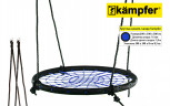 Качели-гнездо Kampfer выполнены из металлической рамы диаметром 80 сантиметров, с дополнительной защитной оплеткой ее бортиков, обтянутых прочным синтетическим канатом толщиной 10 мм выдерживающим нагрузку 100 кг. Плетеное синтетическое сидение качелей удобное и практичное, не собирает грязь и воду, при сильных загрязнениях его можно протереть.