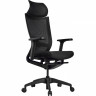 Современное эргономичное кресло Schairs AEON - M01B , в сетке с тканевым сиденьем, с классическим черным каркасом.