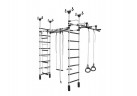 Основой выступает металлическая шведская стенка, которая имеет антикоррозийное покрытие и обладает повышенной устойчивостью к интенсивным нагрузкам. В комплектации также предусмотрены гимнастические кольца, тарзанка, веревочная лестница и канатный лаз. По желанию можно установить и дополнительное оборудование.